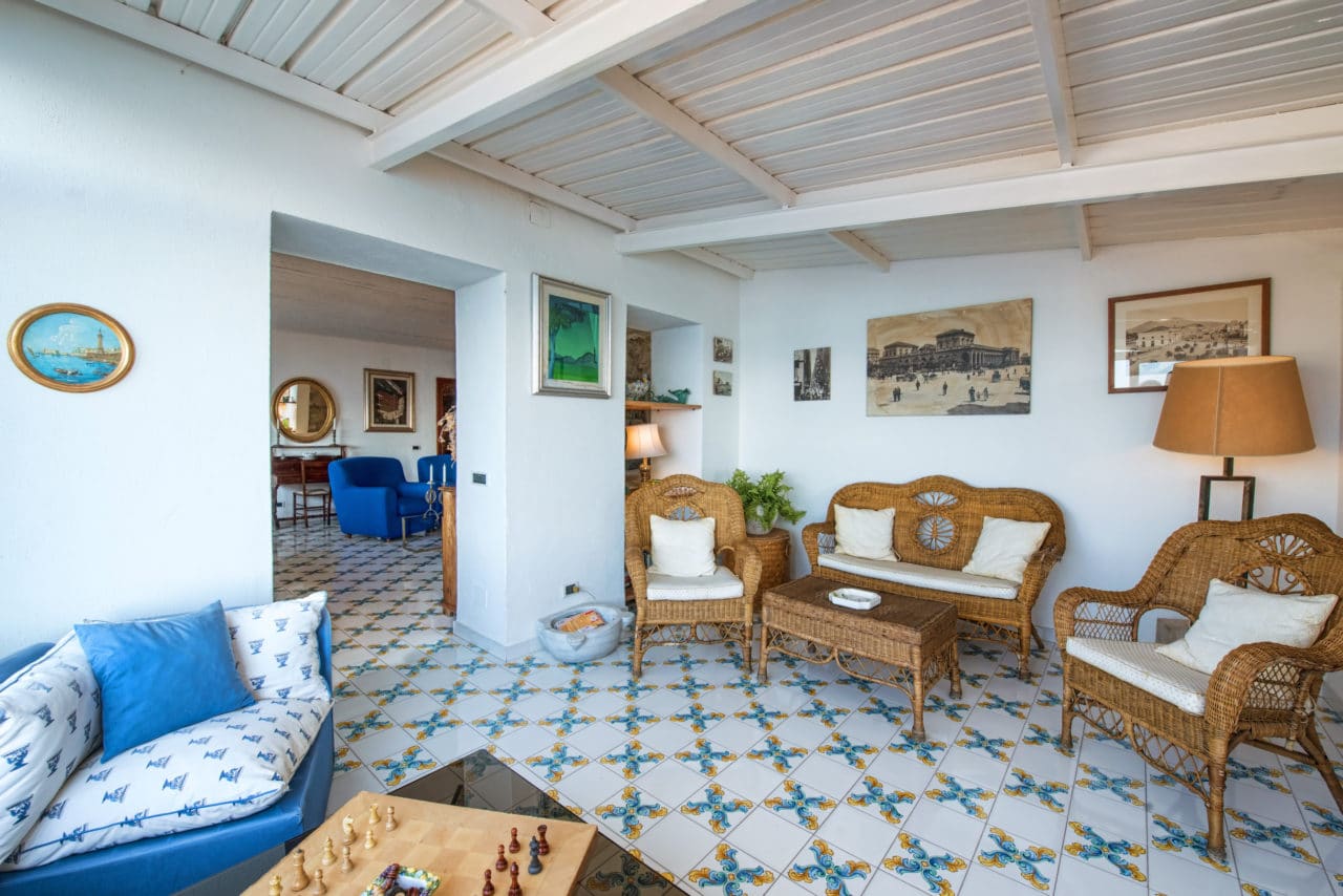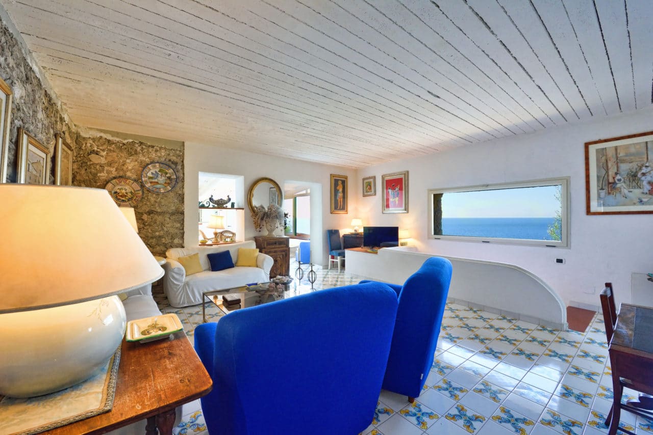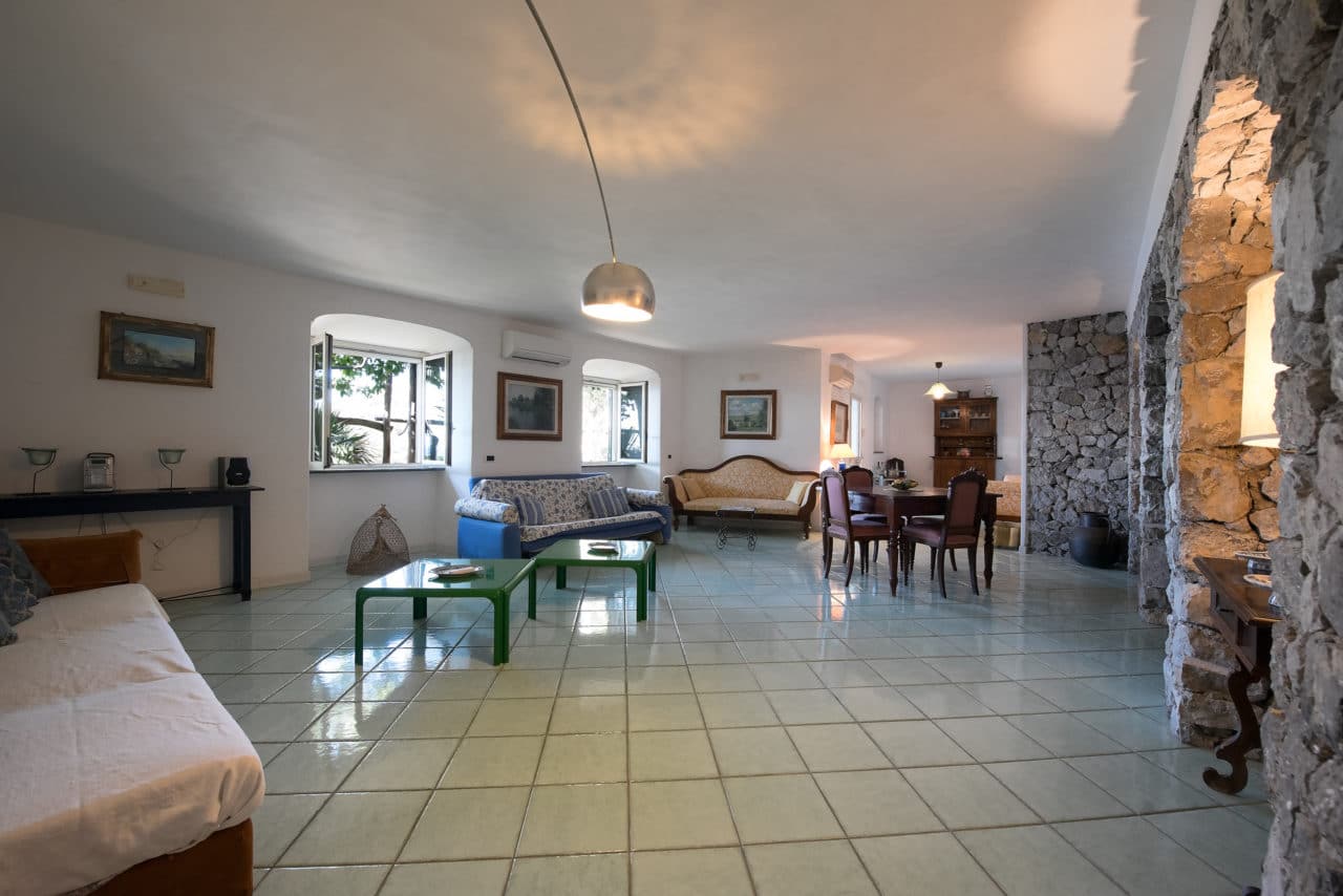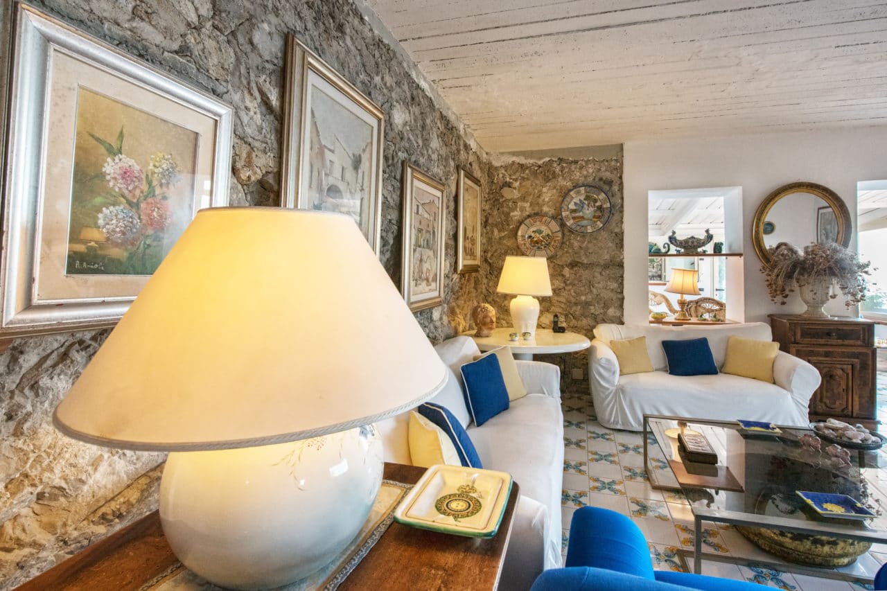 On the first floor there is another large living room with sofas and with sea view, living room has a floor of handmade majolica tiles, in the characteristic style of the Amalfi Coast.