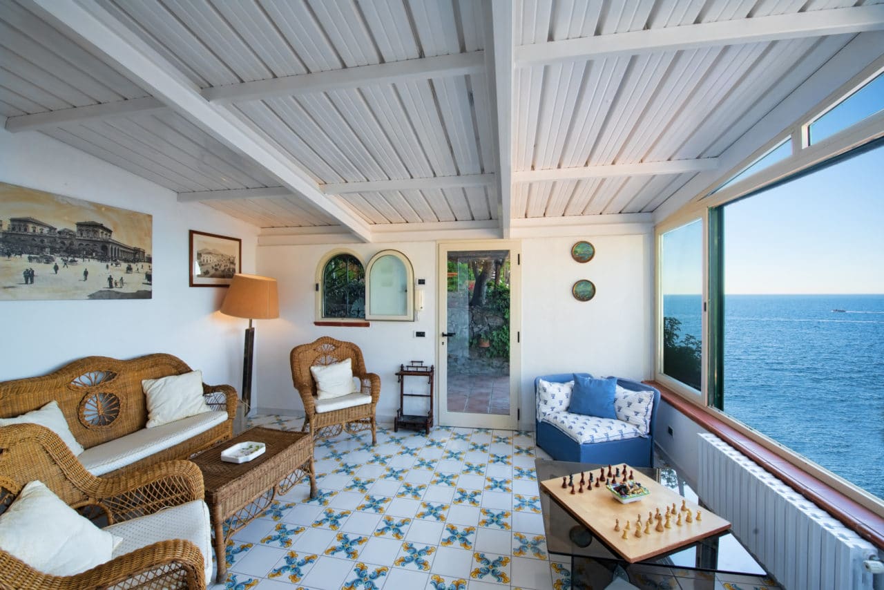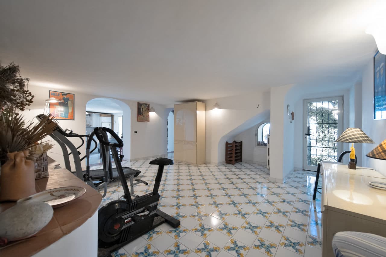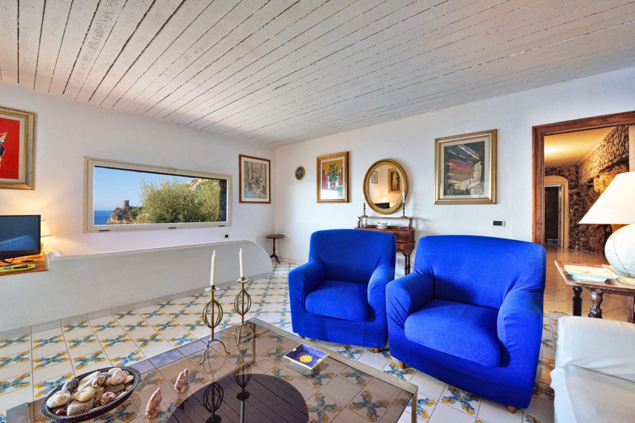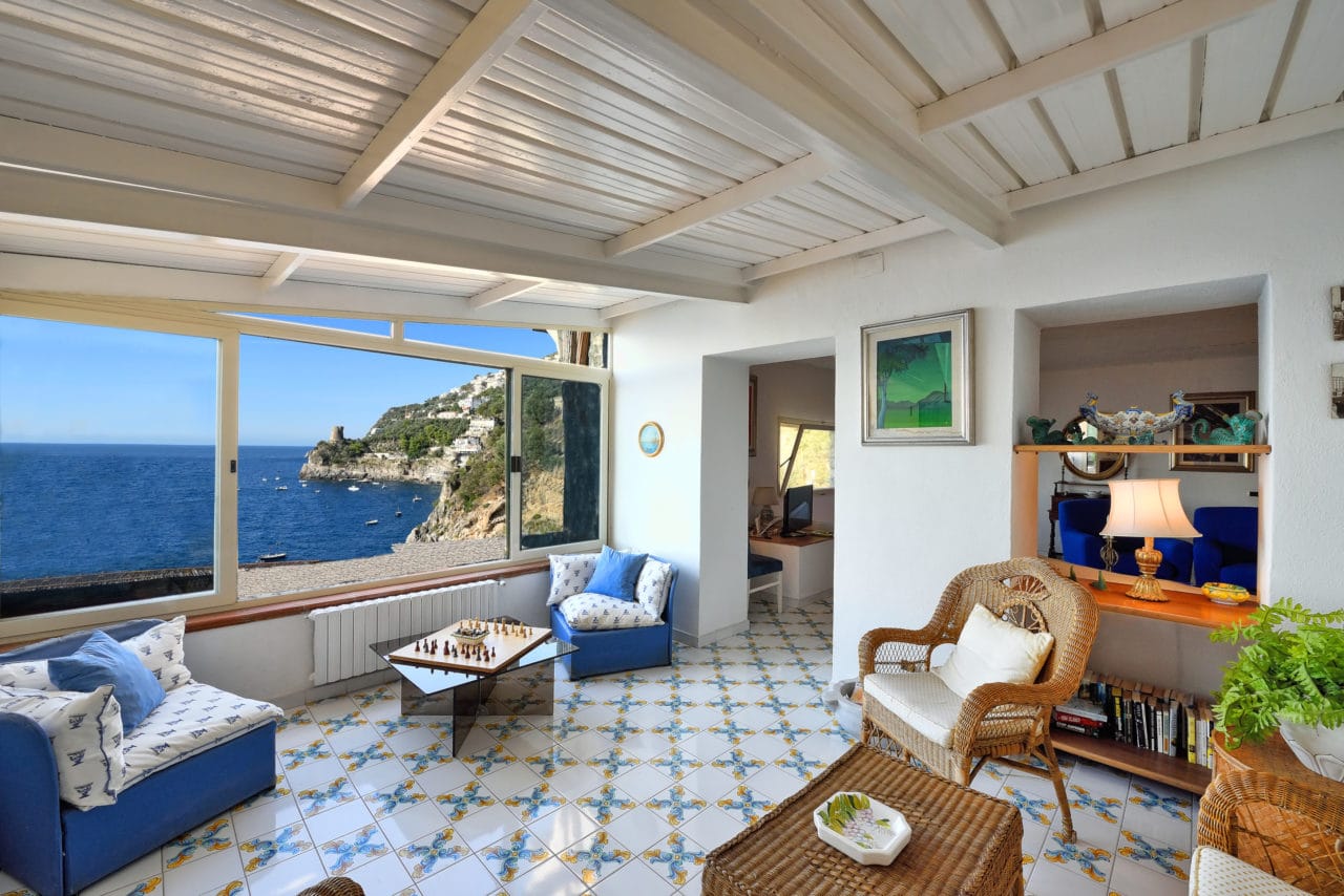 On the first floor there is another large living room with sofas and with sea view, living room has a floor of handmade majolica tiles, in the characteristic style of the Amalfi Coast.
