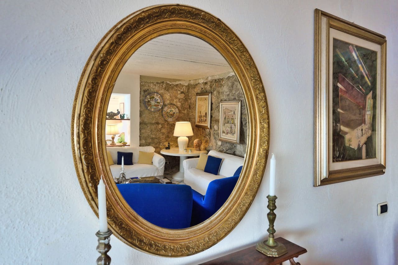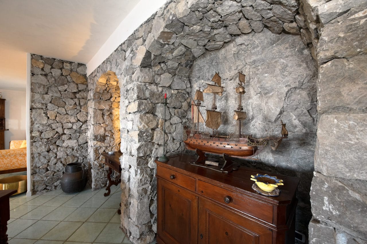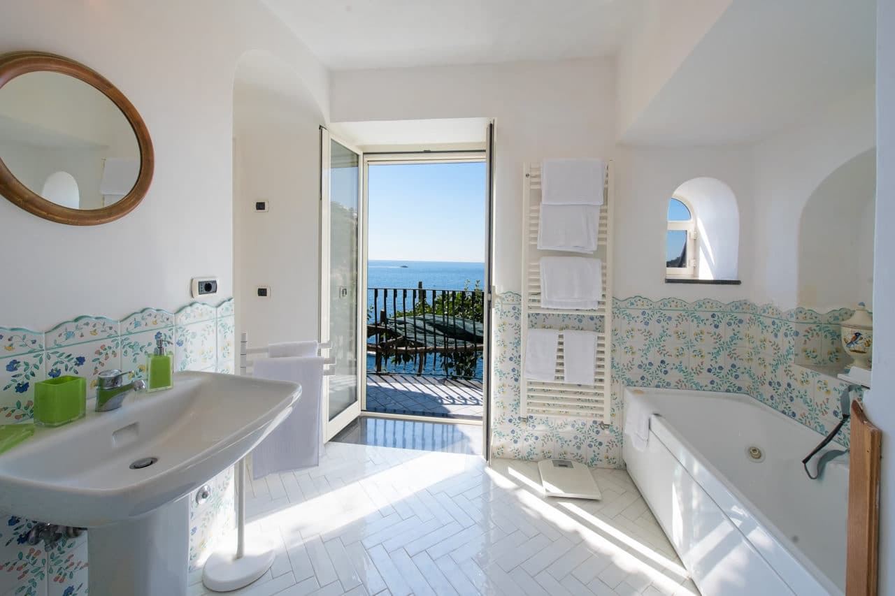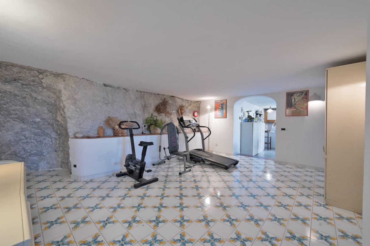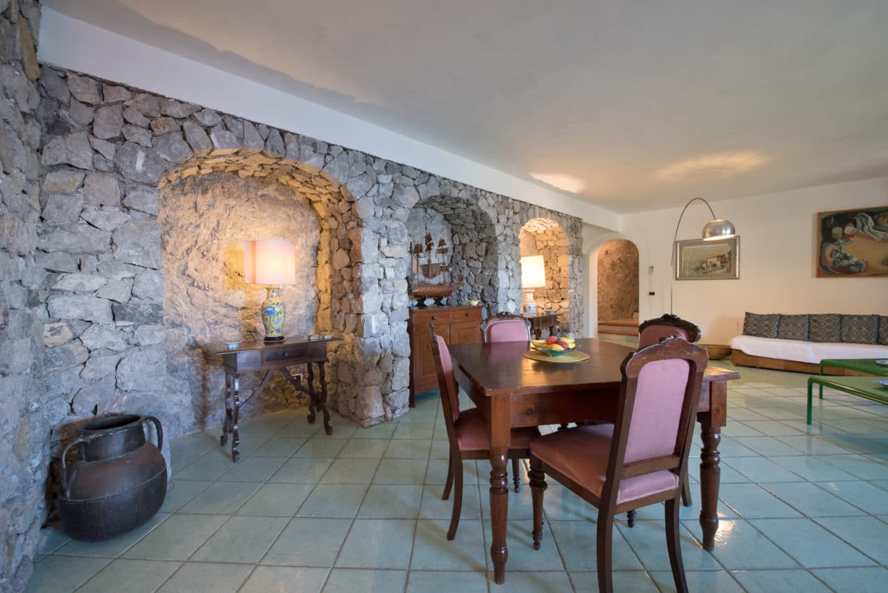 On the first floor there is another large living room with sofas and with sea view, living room has a floor of handmade majolica tiles, in the characteristic style of the Amalfi Coast.