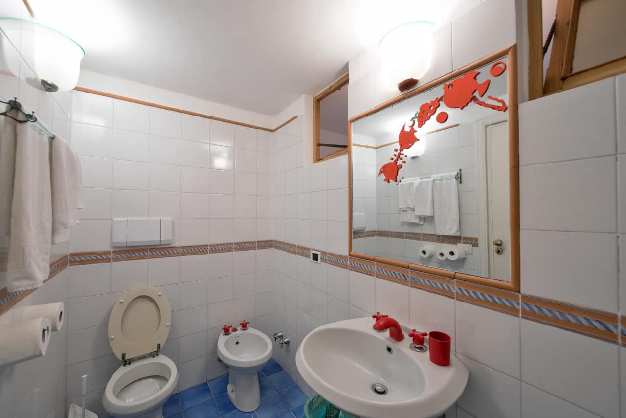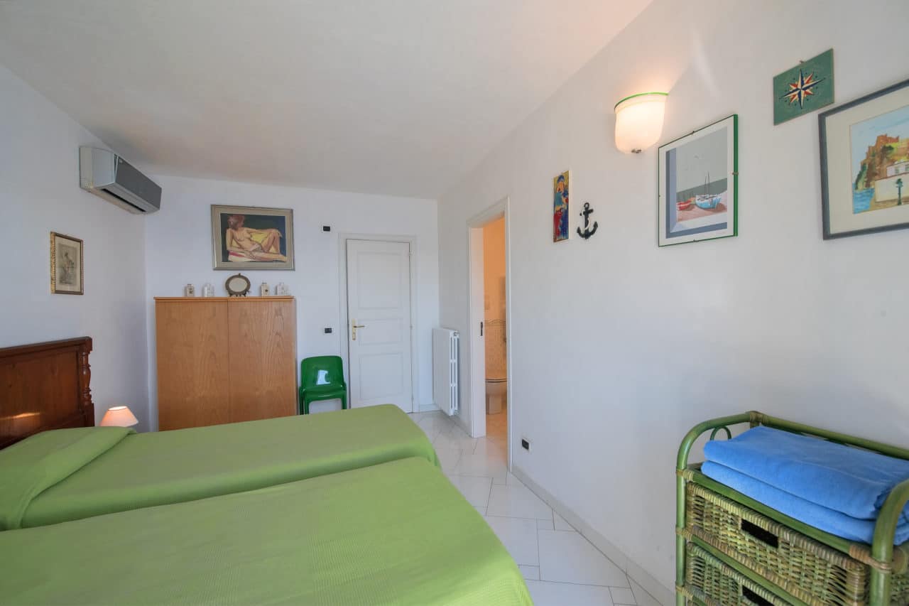 The bedroom has a matrimonial bed (160 cm/62 inches, wider than a queen-size bed), that can be split into twins if requested.