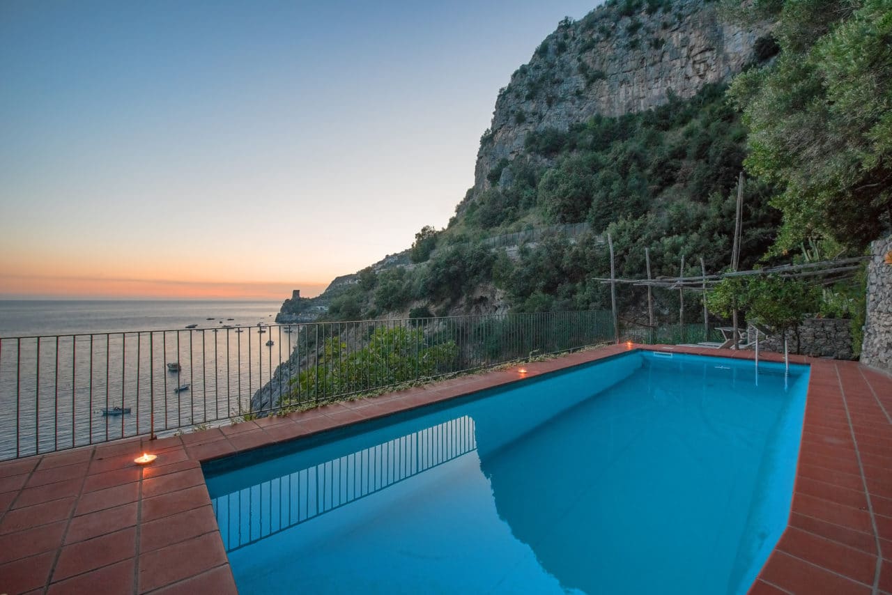 Villa Smeraldo lies in Praiano, one of the most beautiful coves of the coast, between Praia Beach and the Fjord of Furore; halfway between Positano (7 km) and Amalfi (8km), both famous throughout the world for their lovely beaches, delicious shops, fine restaurants and lively bars.