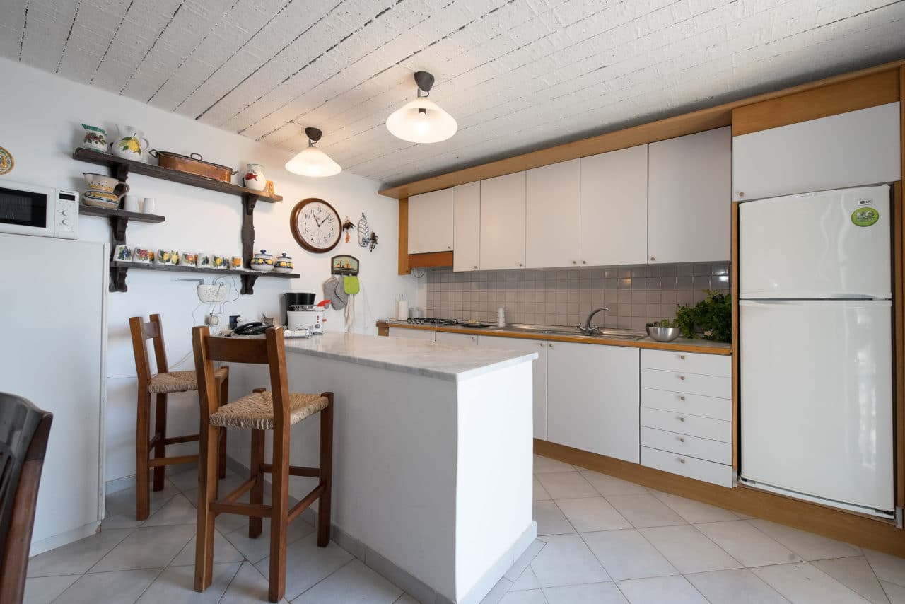 On the ground floor there is a large lounge overlooking the sea with table and sofa bed, air conditioning, 1 service bathroom with shower, a fully equipped kitchen connected to the terrace where you can spend moments of relax organizing a dinner after the beach, with a breathtaking view.