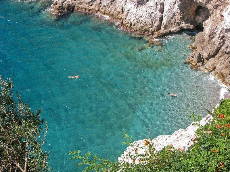 You will reach it from the villa going down a 20-meters (65-feet) walkway that is cut into the rocky cliff and includes approximately 135 stairway steps.