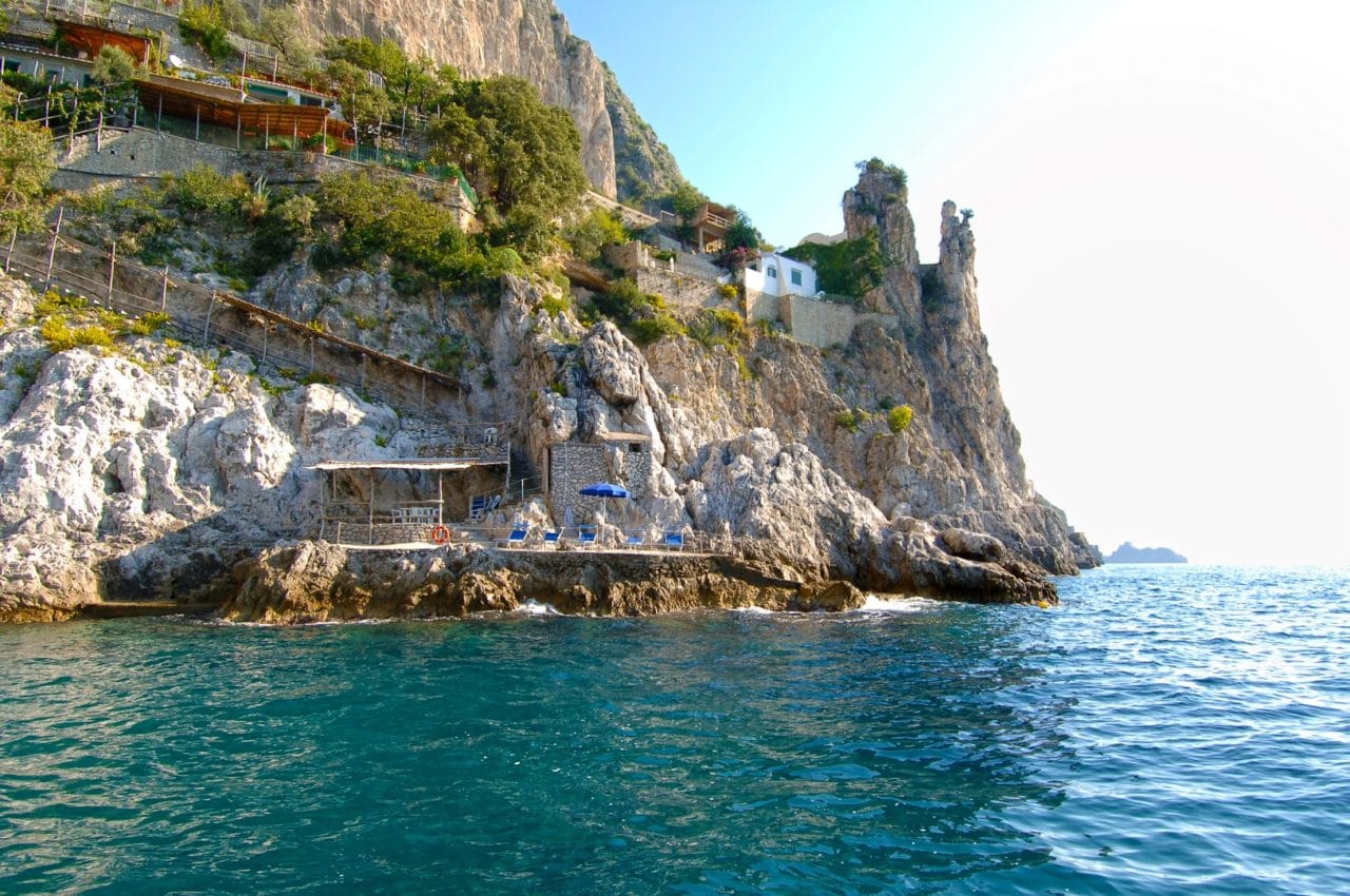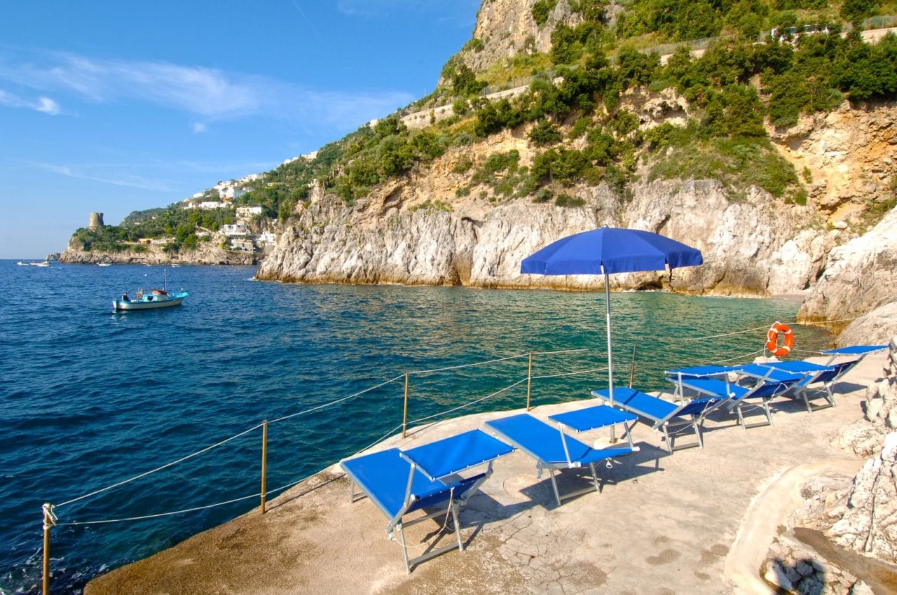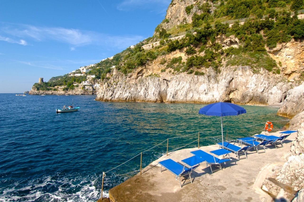 Praiano’s beach is the small, enchanting Marina di Praia, which lies at the end of the wild Praia Valley.
